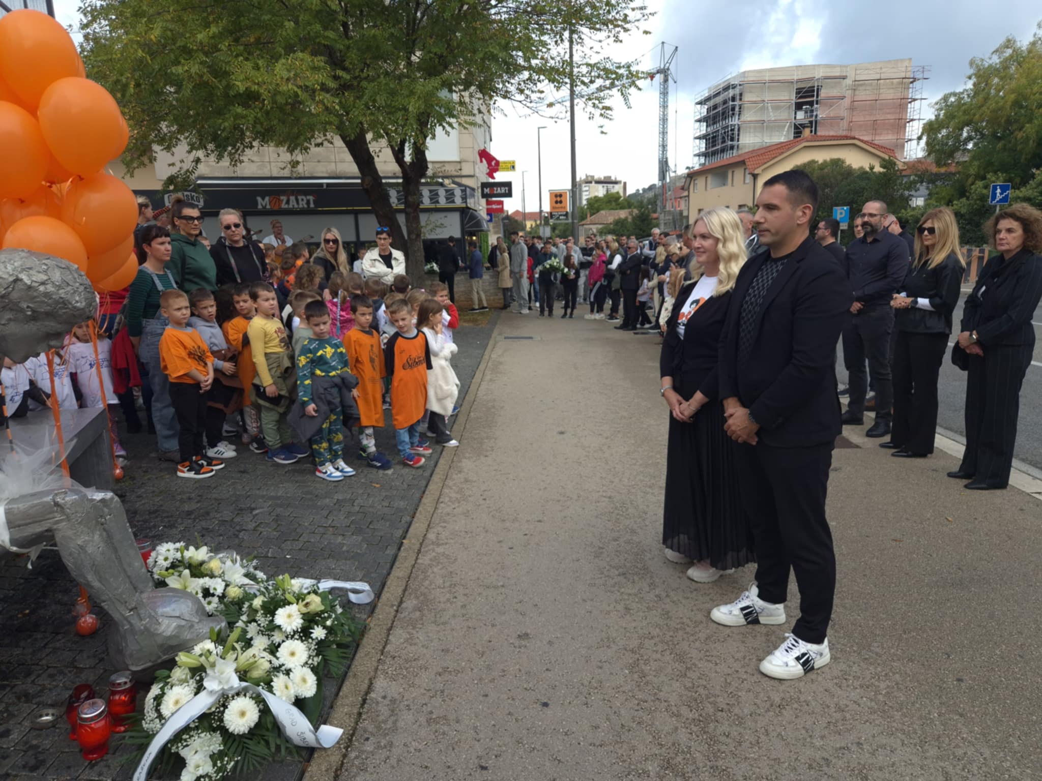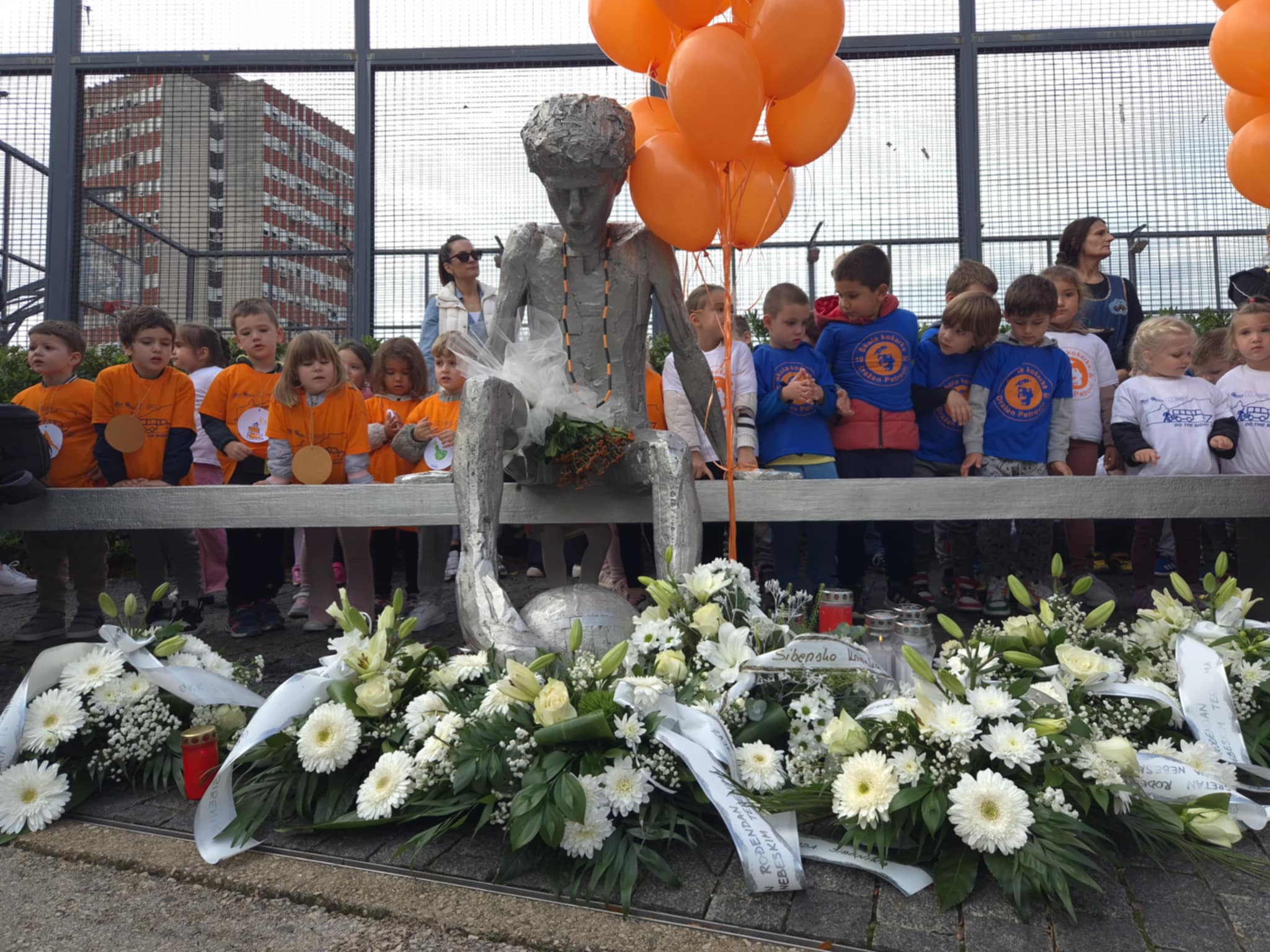Djeca šibenskih vrtića simbolično su pustila balone u čast našeg sportskog velikana, dok su predstavnici grada, županije i sportskih klubova položili cvijeće i svijeće kod Draženovog spomenika i Draženovog koša.