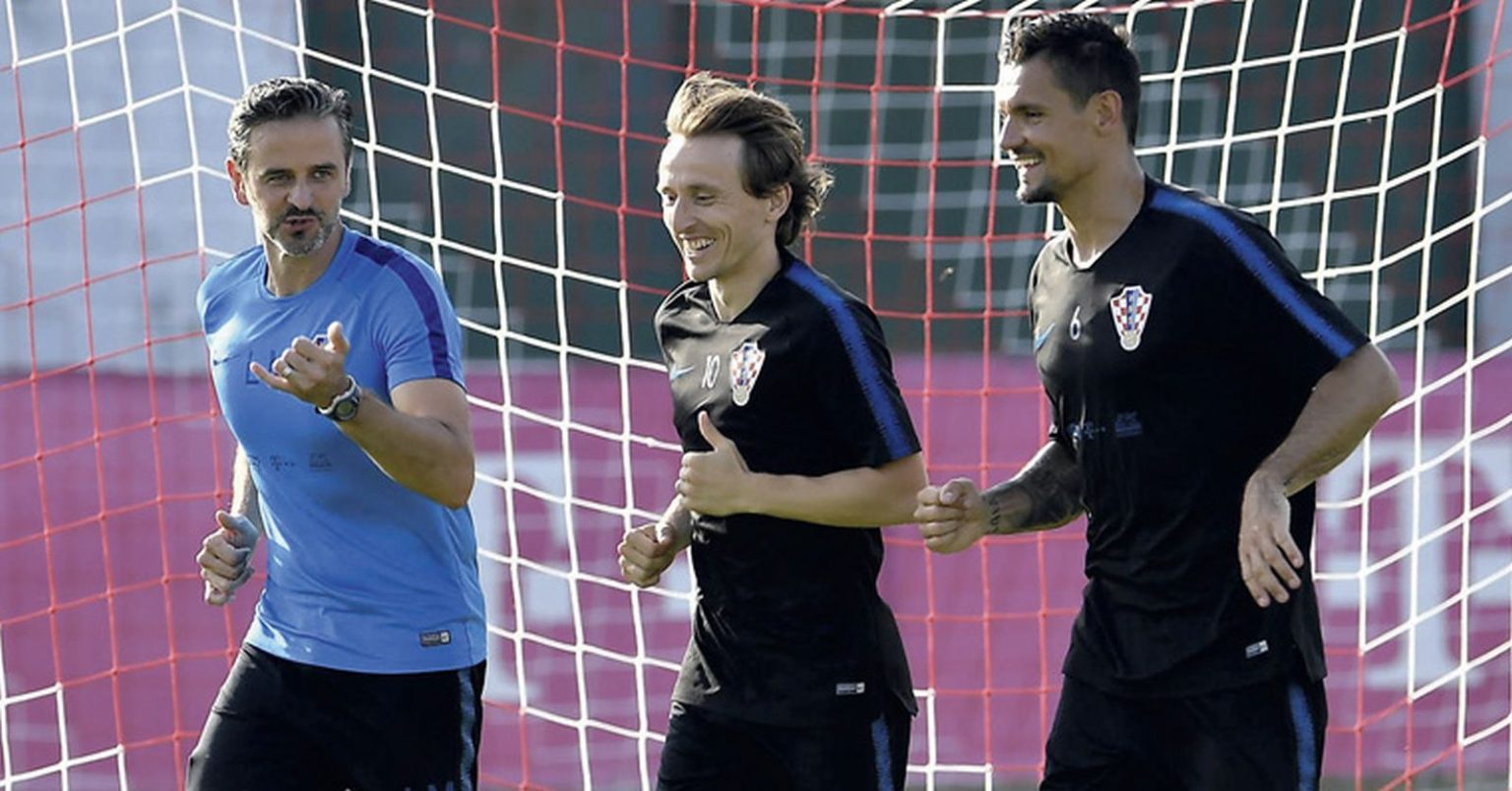 Foto: Drago Sopta (HNS) - prof. dr. sc. Luka Milanović na treningu reprezentacije s Modrićem i Lovrenom